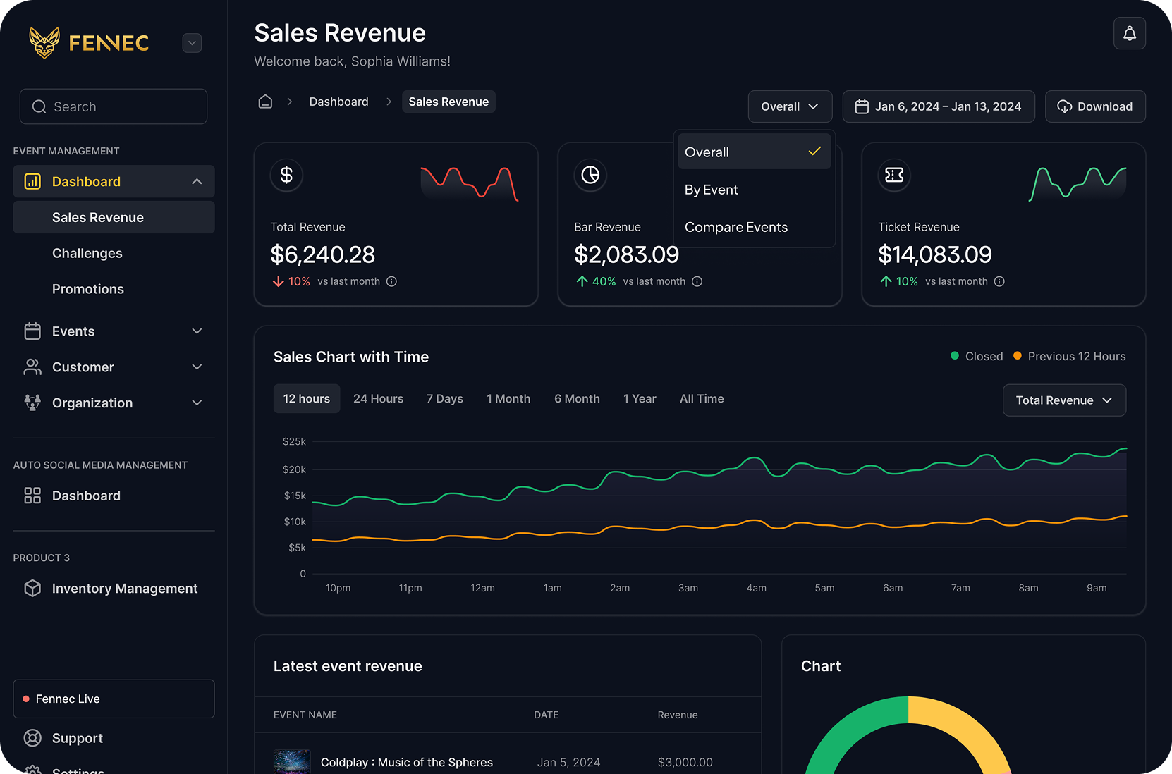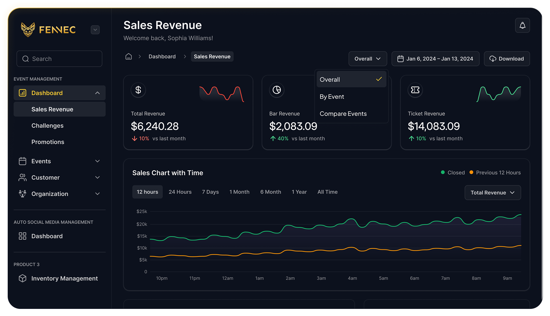 Understanding what drives your revenue is key to growing your business. Fennec’s event comparison feature allows you to: