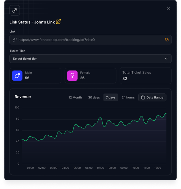 Track your nightclub’s total earnings, bar sales, and ticket revenue with real-time analytics. Compare events, analyze trends, and maximize profitability with Fennec’s AI-driven revenue insights.