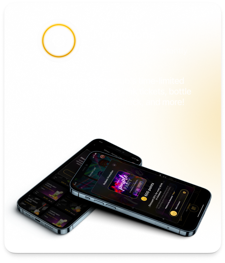 Access a wide variety of promotions exclusive and personalized to you, including line skips, drink tickets, bottle discounts, and more…
