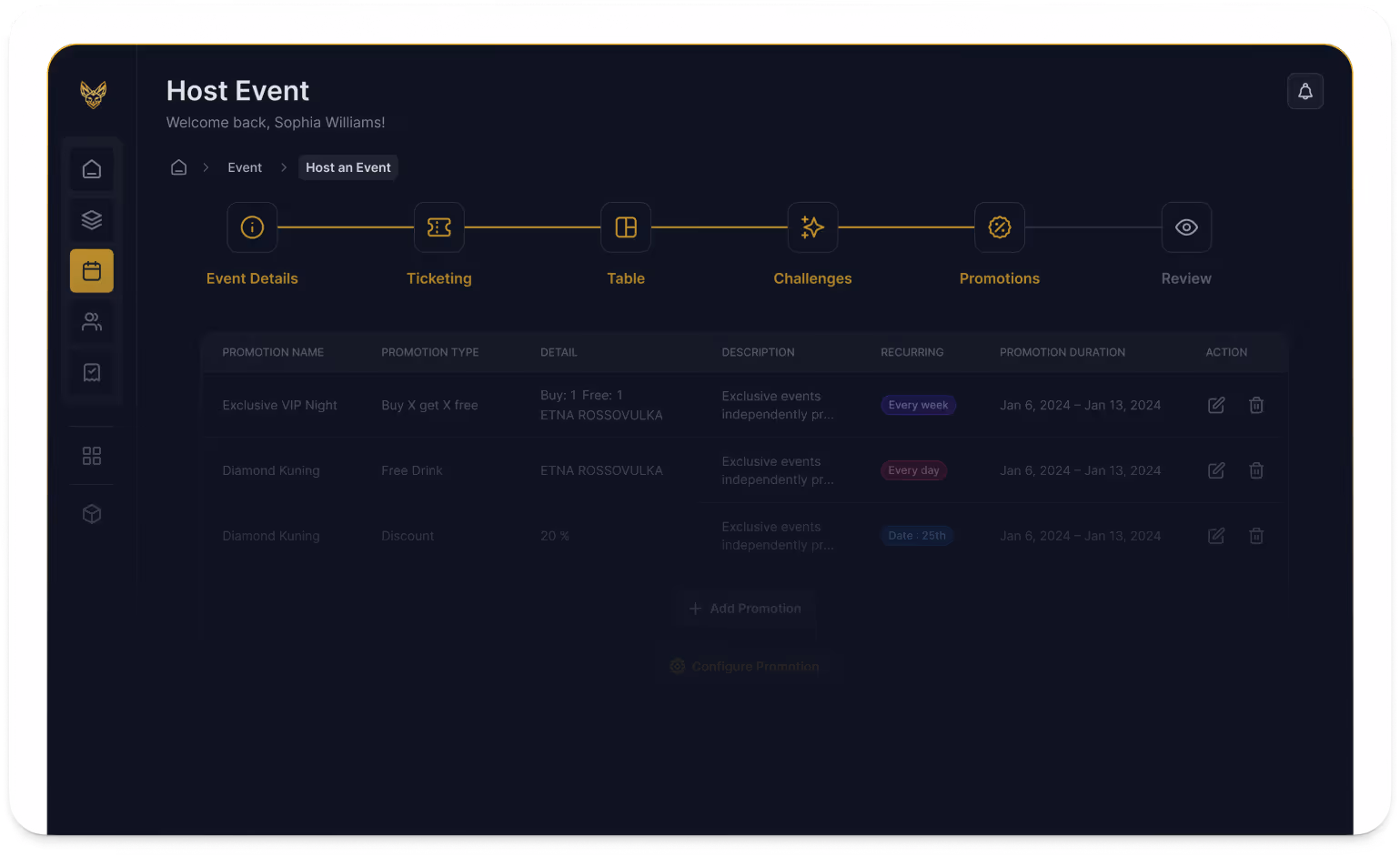 Customize event details, pricing, and promotions while ensuring a seamless guest experience from start to finish.