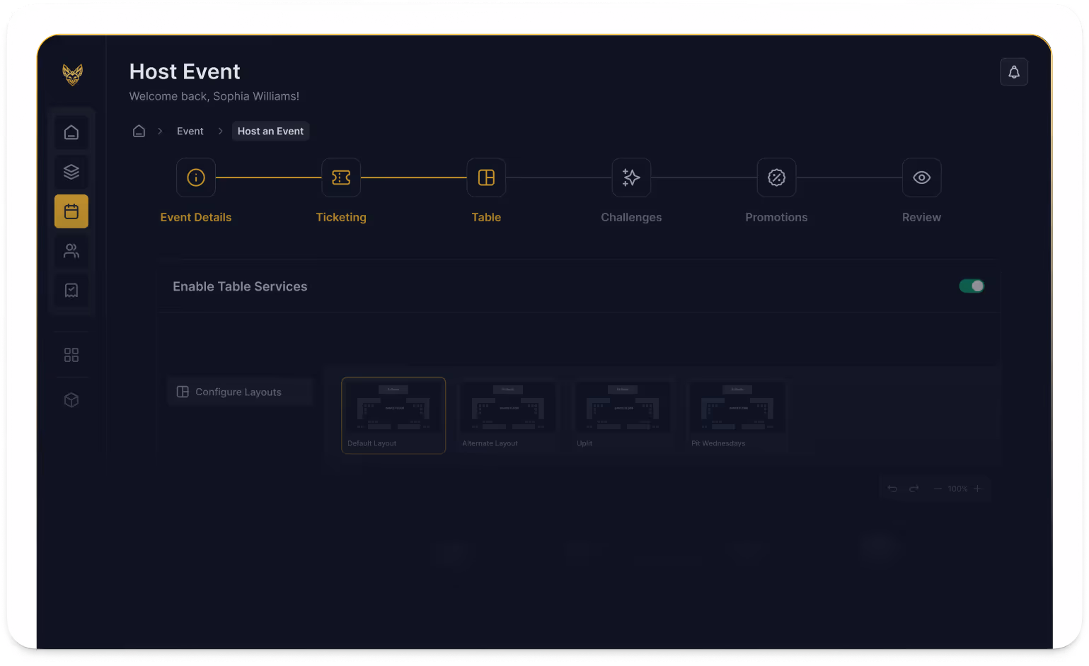 Fennec’s "Host an Event" feature empowers club owners to customize and manage every aspect of their event—from ticketing and table layouts to promotions and guest engagement—all in one intuitive platform.